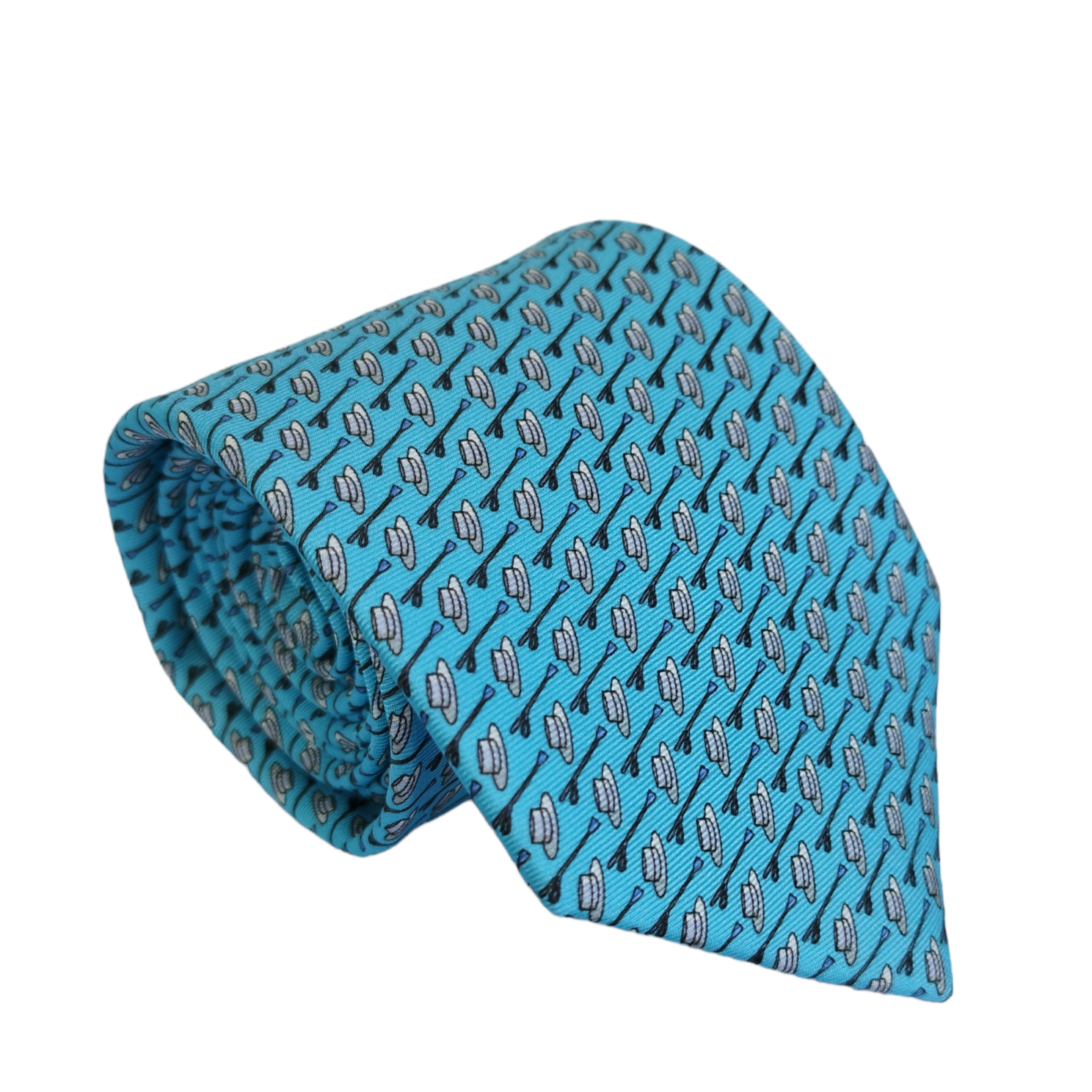 Gravata tradicional de seda azul com estampa. Largura: Regular – 8cm.