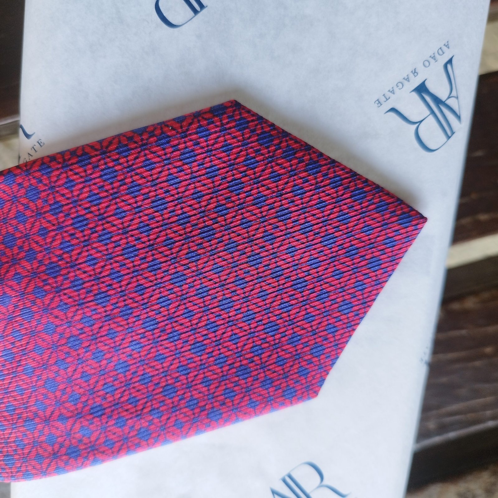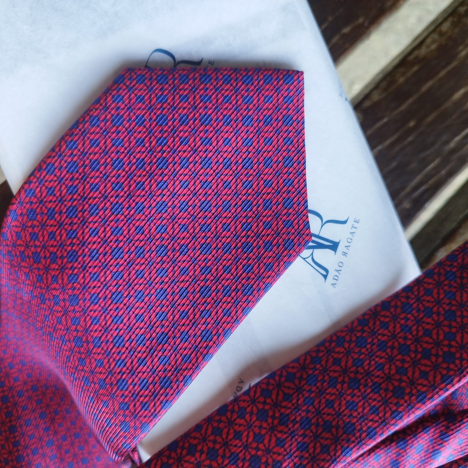 Esta gravata azul com detalhes em fúcsia apresenta uma padronagem geométrica marcante, com formas simétricas que criam um contraste elegante e moderno. O design, cuidadosamente elaborado, faz dela uma peça versátil que transita com facilidade entre ocasiões formais e looks criativos do dia a dia. Perfeita para quem valoriza estilo e sofisticação, esta gravata é um verdadeiro símbolo de personalidade e bom gosto.