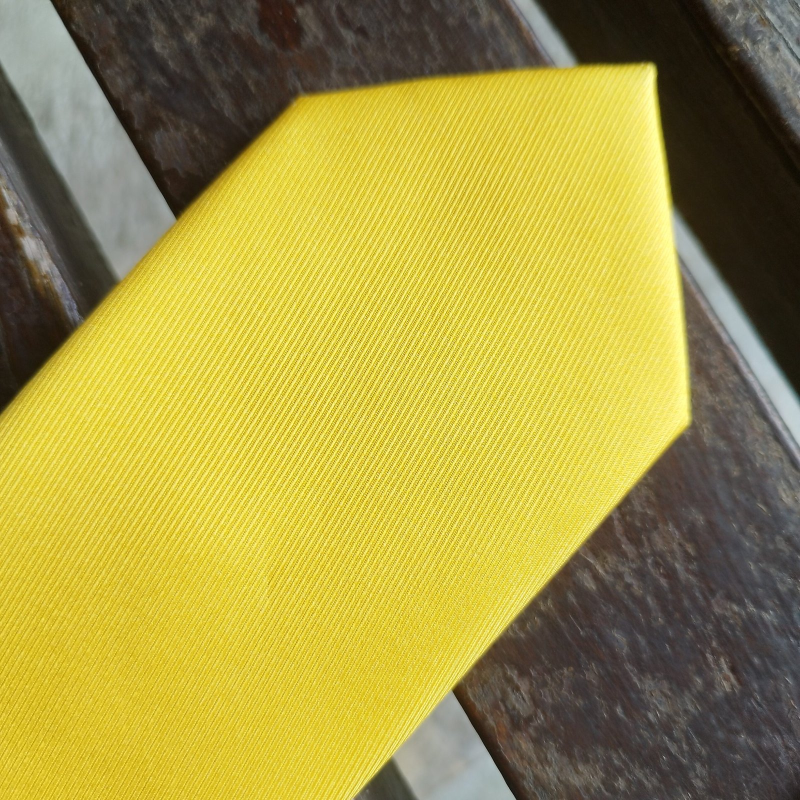 Gravatas lisas são clássicos indispensáveis no guarda-roupa masculino. Em casamentos, especialmente, elas são amplamente escolhidas por padrinhos que desejam um visual alinhado e harmônico com a cerimônia. A tonalidade amarela traz luminosidade, otimismo e um toque de modernidade, sendo ideal para casamentos diurnos ou ao ar livre.
