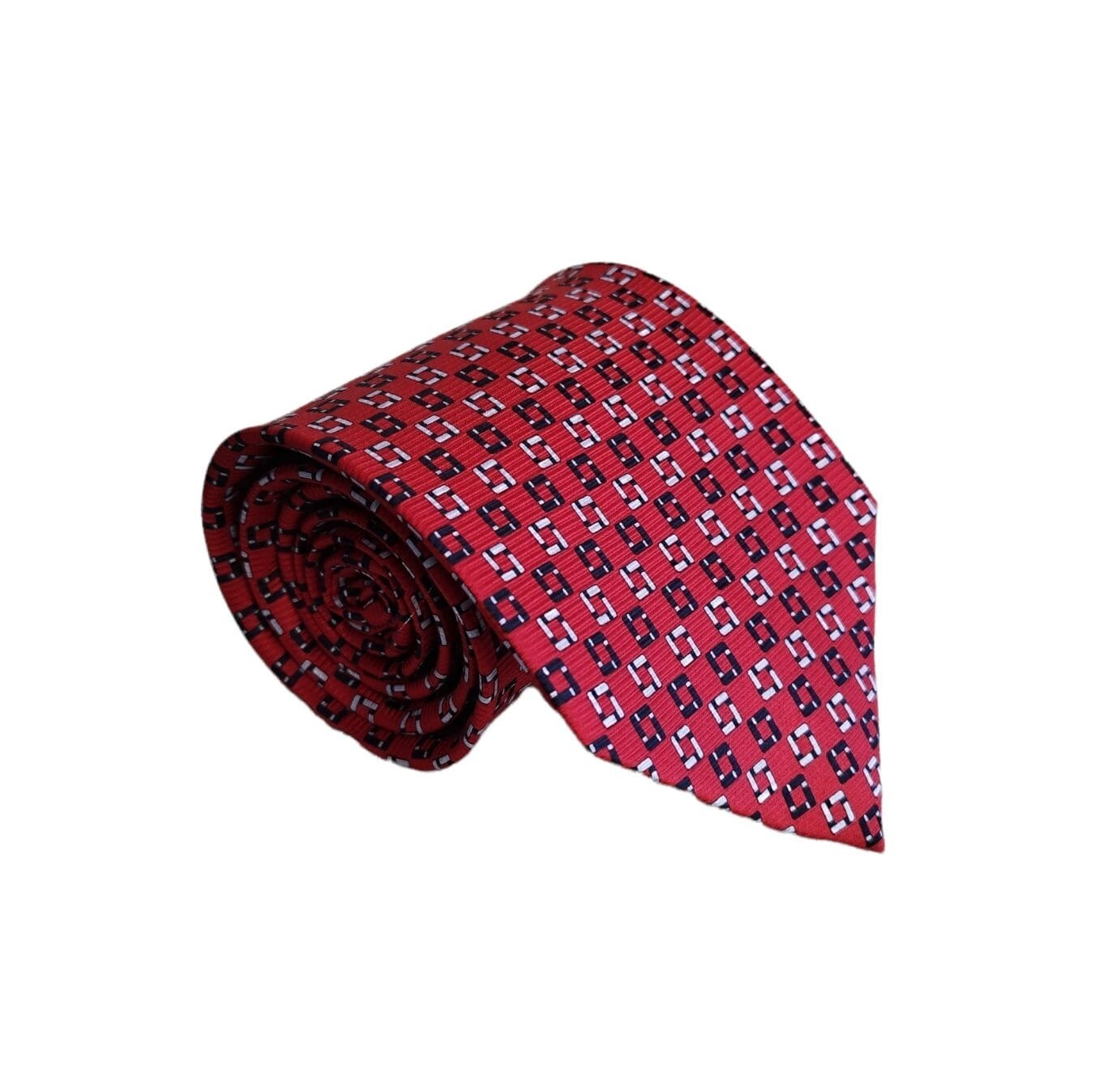 Gravata tradicional de seda vermelha com estampa preta e branca