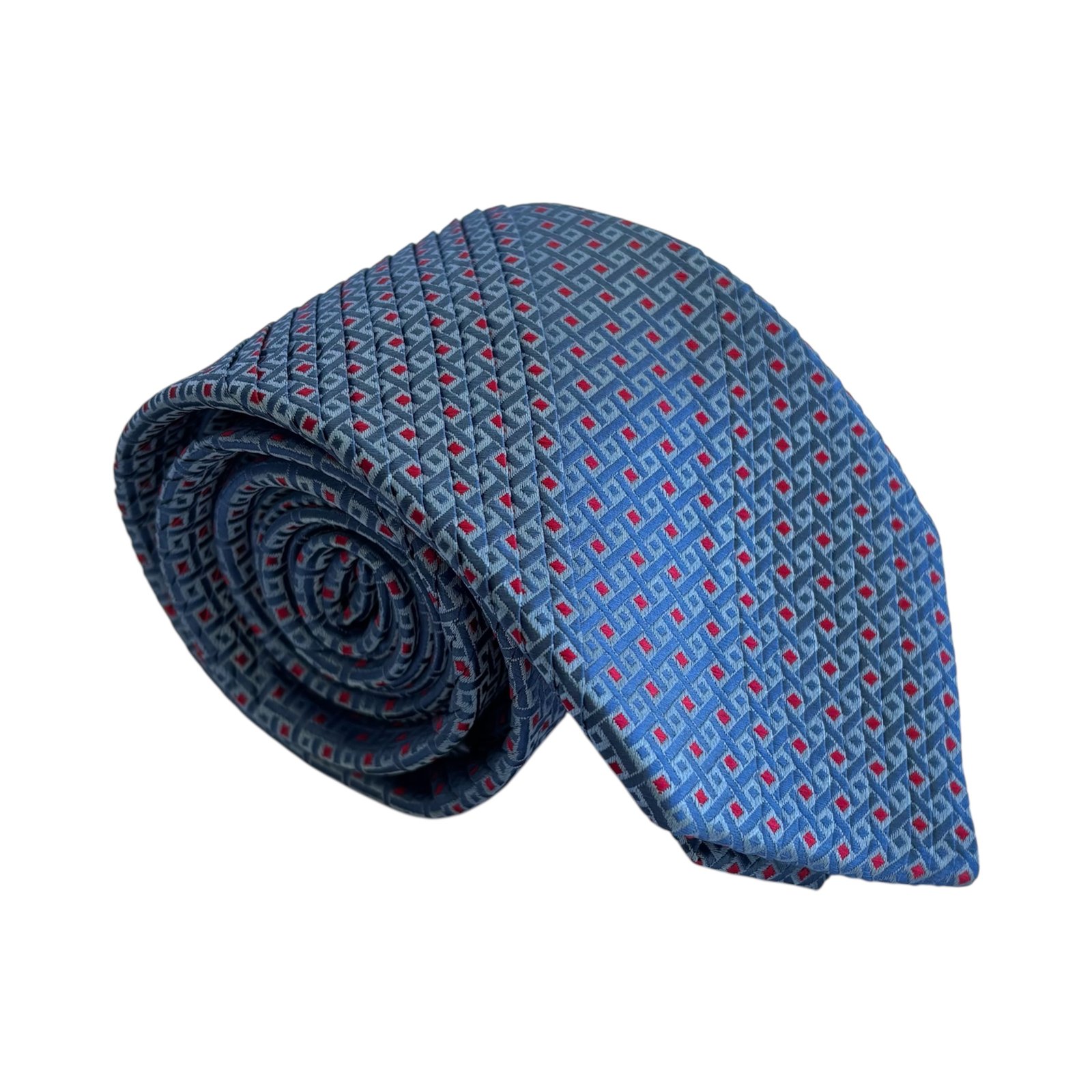 Gravata de Microfibra Drapeada Azul com detalhes em Vermelho com largura de 8cm.